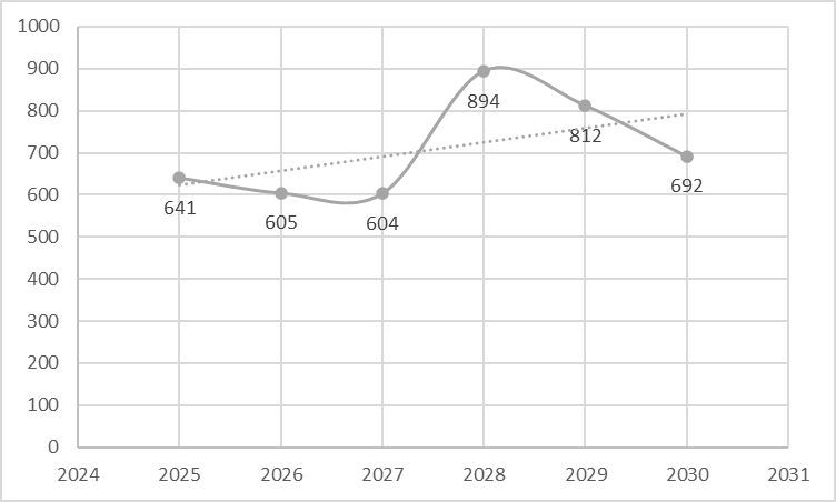 Пик инвестиций в 2028-2029 годах обусловлен или завершающими финансовыми вливаниями в уже реализующиеся проекты, или стартом бюджетирования новых проектов, которые к 2028 году получат одобрение со стороны государства и будут юридически оформлены.