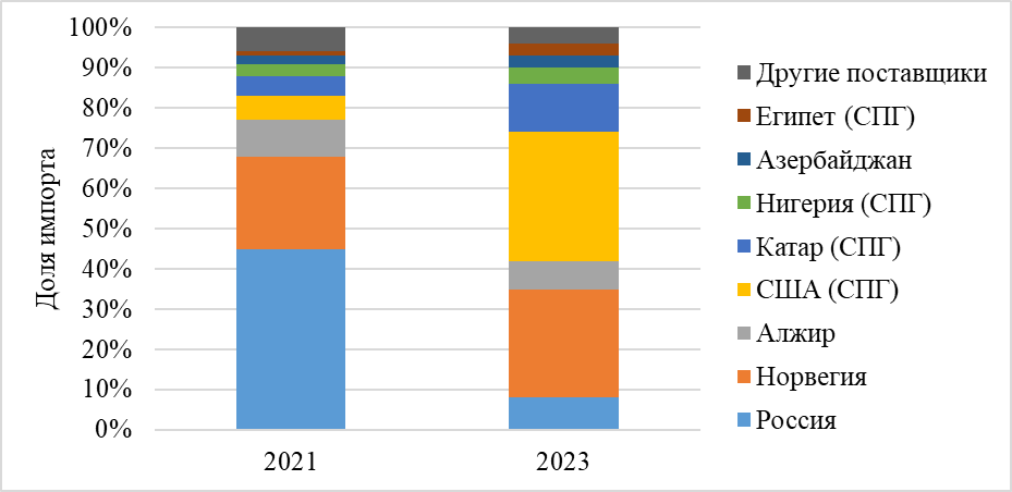Рисунок 1 – Структура импорта природного газа в ЕС по странам-поставщикам