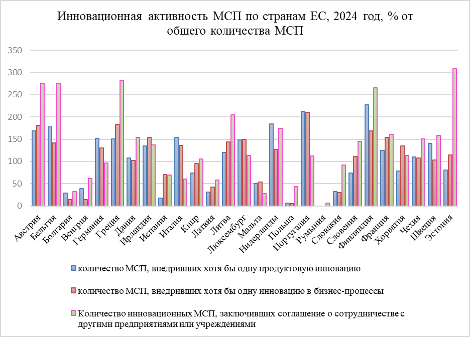 Рисунок 1. Инновационная активность МСП по странам ЕС, 2024 год.