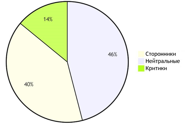 В результате обработки данных проведенного анкетирования и расчета индекса лояльности было получено распределение сотрудников организации по группам (рис.2).